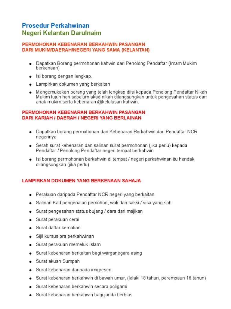 Persediaan Kahwin Prosedur Permohonan Nikah Negeri Kelantan