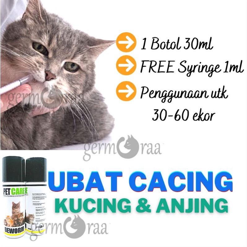 . RM 300 - RM 1500. Ubat ini akan membantu menghapuskan cacing di dalam usus kucing. Ubat cacing sepatutnya diberi kepada kucing setiap 3 bulan.
